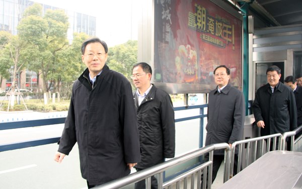 在通江路飞龙路站,李省长一行走上一辆刚刚停稳的快速公交车。在车上,他向市公交集团公司董事长、总经理蔡健臣详细询问了快速公交线网、票价、班次和客运量等情况,对常州快速公交的网络化、低票价、高品质、快捷度表示满意。这时,车厢内的乘客认出了李省长,他主动走到乘客中间,亲切地问他们,“你是哪里人?”“在哪里上班?”“经常乘公交车吗?”“感觉公交服务怎么样?”对于乘客的回答,他一边认真地听着,一边微笑着点头。车行驶到通江路黄河东路站,李省长与大家挥手道别。
