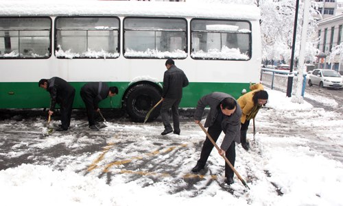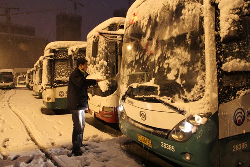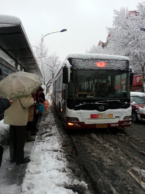 2月18日晚的一场大雪,给第二天乘客的出行带来了极大的不便。广大公交员工齐心协力,奋战暴雪,尽可能保障乘客的安全出行。