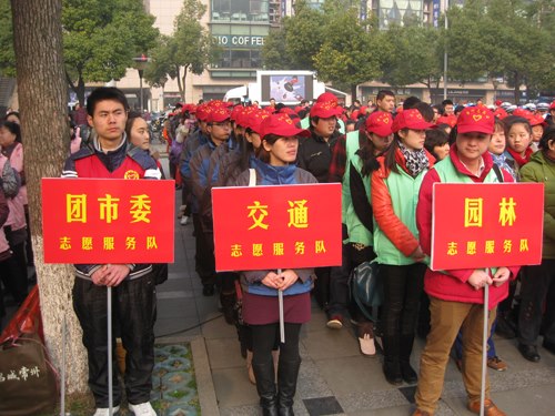 今年是毛主席为雷锋同志题词50周年,根据市文明委的统一部署,来自各辖区志愿者协会、公安、交通、环保、园林、卫生、教育、等600人左右的志愿服务队参加了人民公园广场的集中行动。仪式上,一批优秀志愿服务组织和优秀志愿者受到了表彰,人民公园广场被命名为“雷锋广场”,成为我市最大的志愿服务点,在今后的每个星期六开展形式各样的学雷锋志愿服务活动。