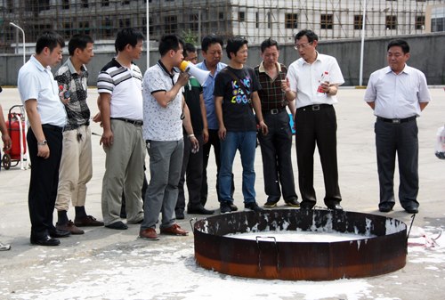 7月4日下午,集团公司在第一汽车公司停车场进行了消防安全试验。试验项目包括汽油燃烧试验、新型灭火器试验和安全锤敲窗试验。集团公司董事长、总经理蔡健臣、分管安保副总经理曹国祥、分管机务副总经理朱向军及相关单位部门负责人参加了试验。(安保部 王兵伟)