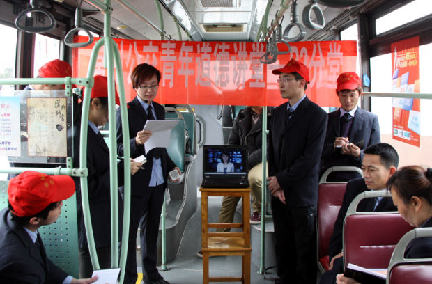 3月24日下午3点,集团公司团委在花园公交中心站内的B2车厢里举办了首期青年“道德讲堂”活动。来自各岗位的团员青年、“青年文明号”负责人共20人走进“道德讲堂”,感受、学习身边青年的真善美。