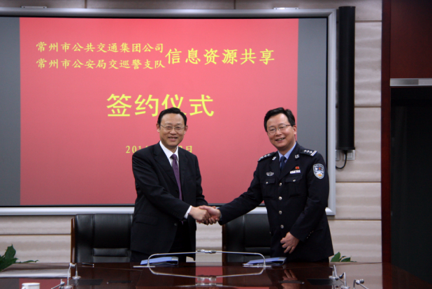 4月2日下午,常州公交与市公安局交巡警支队共同签署了双方信息资源共享合作协议,进一步运用科技信息手段,提高交通监管水平,提升公交运营效能,确保城市交通顺畅。