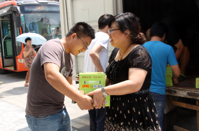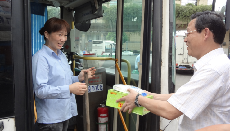 7月23日,大暑,我市最高气温超过36度。中午12点半,集团公司全体领导兵分两路,分别由董事长、总经理蔡健臣和党委书记袁杏娣带队,深入到基层车队,慰问奋战在高温一线的工作人员,给广大员工送去清凉。