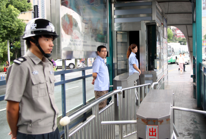 在早、晚两个时段,志愿者们将协助BRT站服员、保安做好BRT站台管理、维持乘车秩序,并对有需要的乘客提供力所能及的帮助。(安保部 俞 晨文/宣传部 张 南摄)