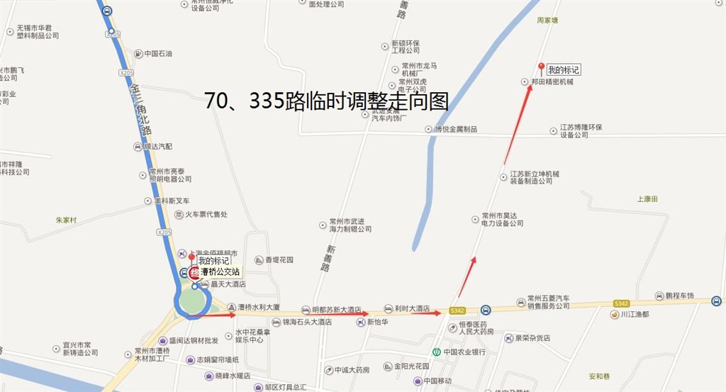 70路:开往湖塘乐购方向停靠站点不变;开往漕桥公交站方向,按原线行驶至漕桥站后调整行驶至漕桥回车场(住夜点)后返回。临时增设“漕桥”南行、“漕桥菜场北、漕桥回车场(住夜点)”双向停靠站。