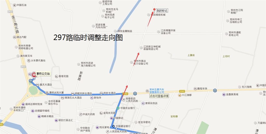 297路:由漕桥公交站调整至漕桥回车场(住夜点)始发,行驶至洽盛路老锡宜路路口后按原线行驶公家圩往返。 临时撤销“漕桥公交站”及“漕桥菜场西”东行停靠站,临时增设“漕桥回车场(住夜点)、漕桥菜场北”双向停靠站。