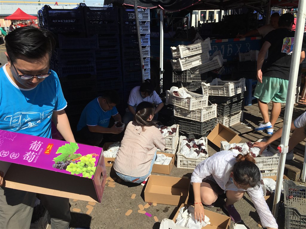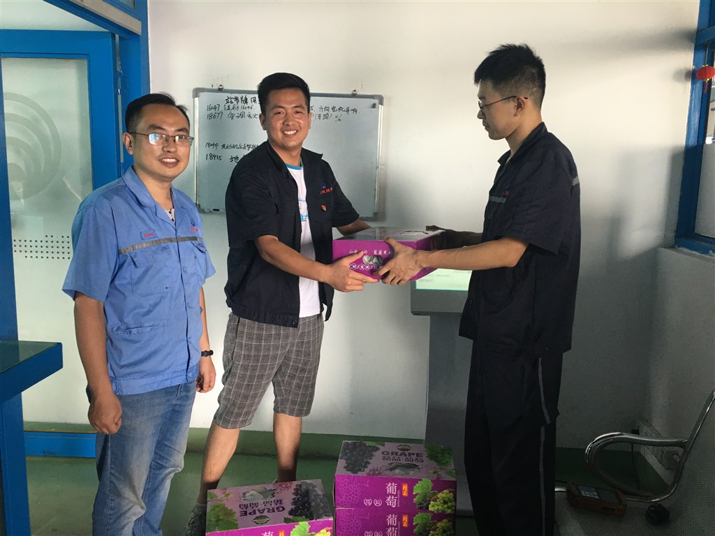 活动前一天,集团公司团委前往凌家塘批发市场现场货比三家预定了一批葡萄。8月12日一大早,团委负责人朱晨翔带领各基层团干十余人来到凌家塘批发市场对当天凌晨运达的葡萄进行分装打包。烈日炎炎,团干们挥汗如雨,虽然汗水浸湿了衣物,但个个脸上洋溢着喜悦的笑容。